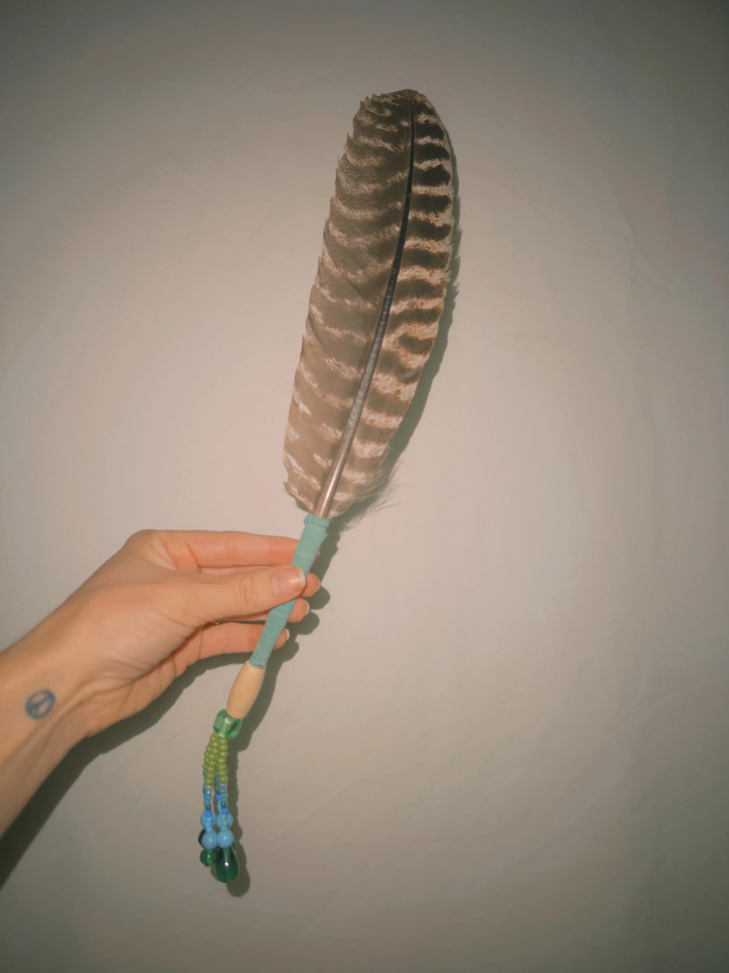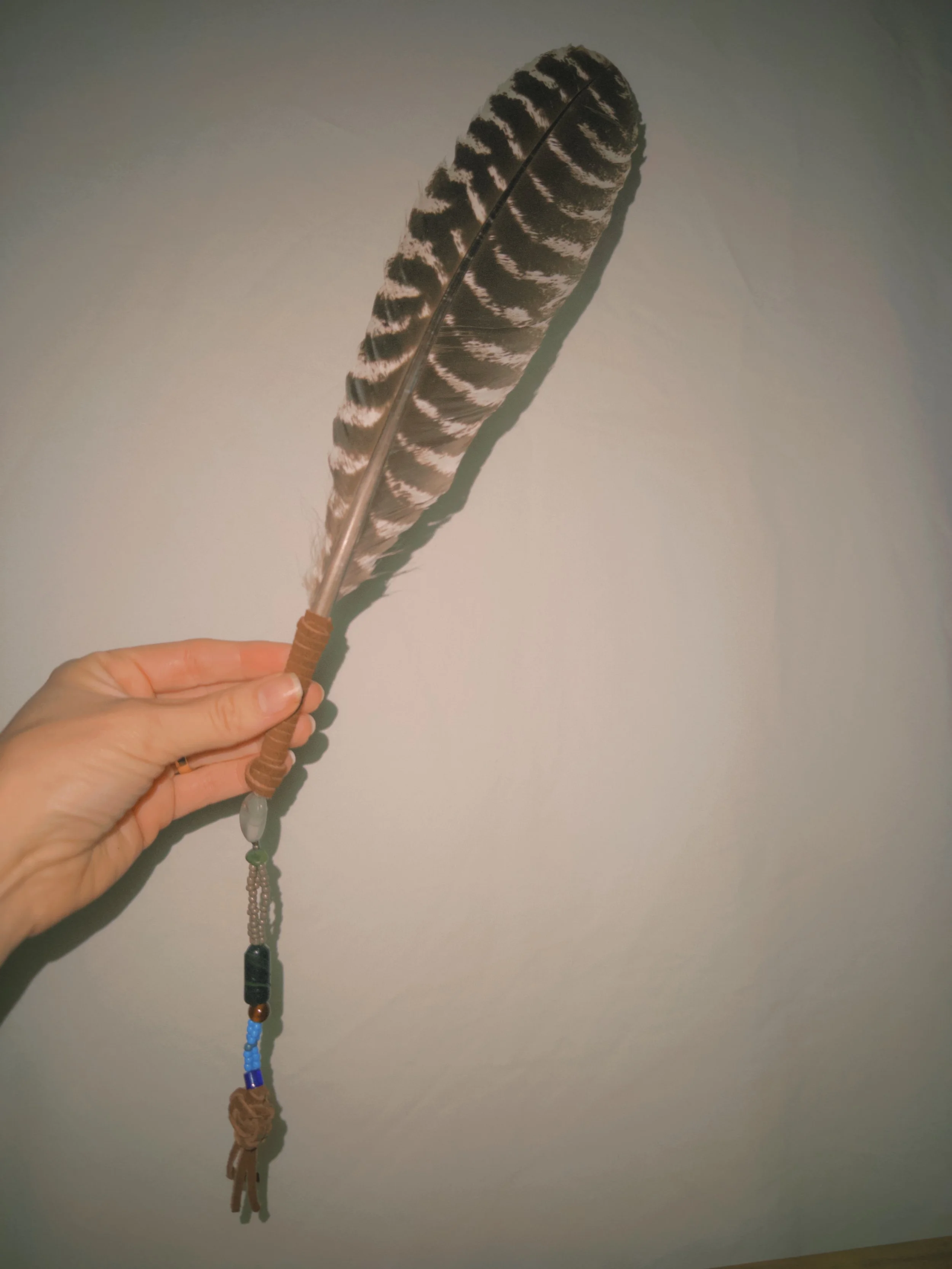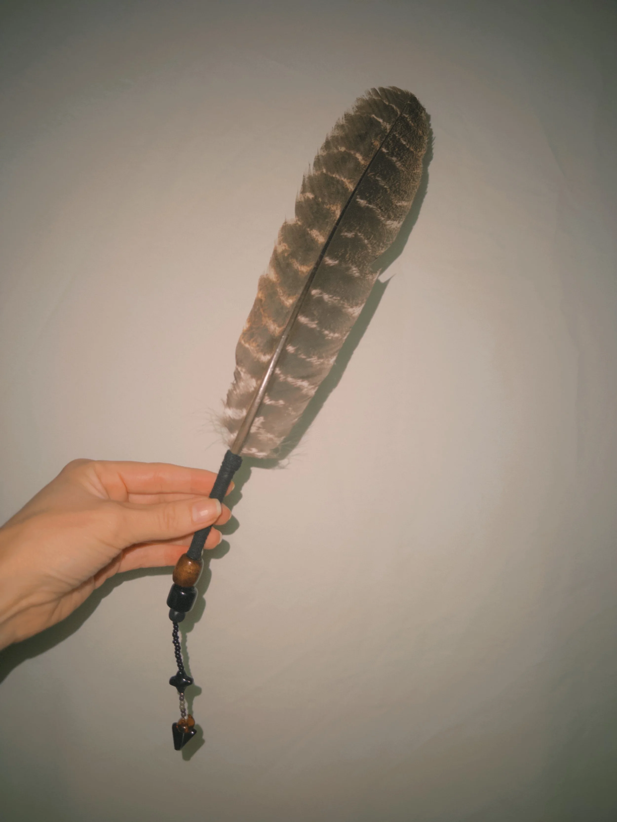 Each talisman in this collection is crafted with a turkey feather—an indigenous symbol of connection between the earthly and the spiritual. Feathers are considered messengers, carrying prayers, intentions, and guidance between realms. While each piece holds its own unique imprint (whether through the Power Animal or Sacred Direction it represents), the feather itself adds an added layer of it’s own medicine. The beads woven into each talisman also carry meaning through their color, texture, type, and placement, adding subtle symbolism and story to each piece. Every feather is ethically sourced, carefully cleaned, sanitized, and smudged before becoming a talisman.